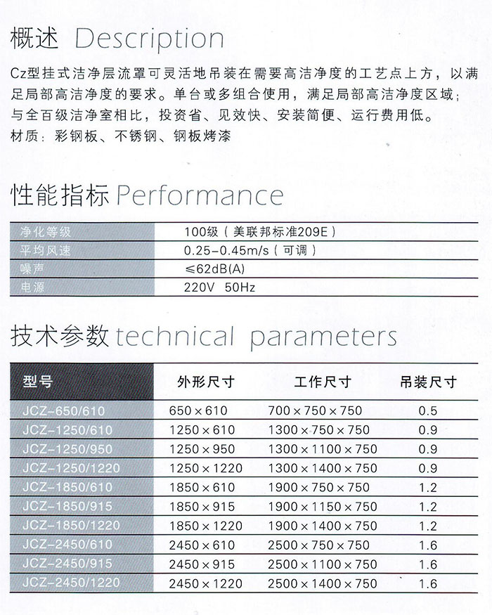 Cz型挂式洁净层流罩