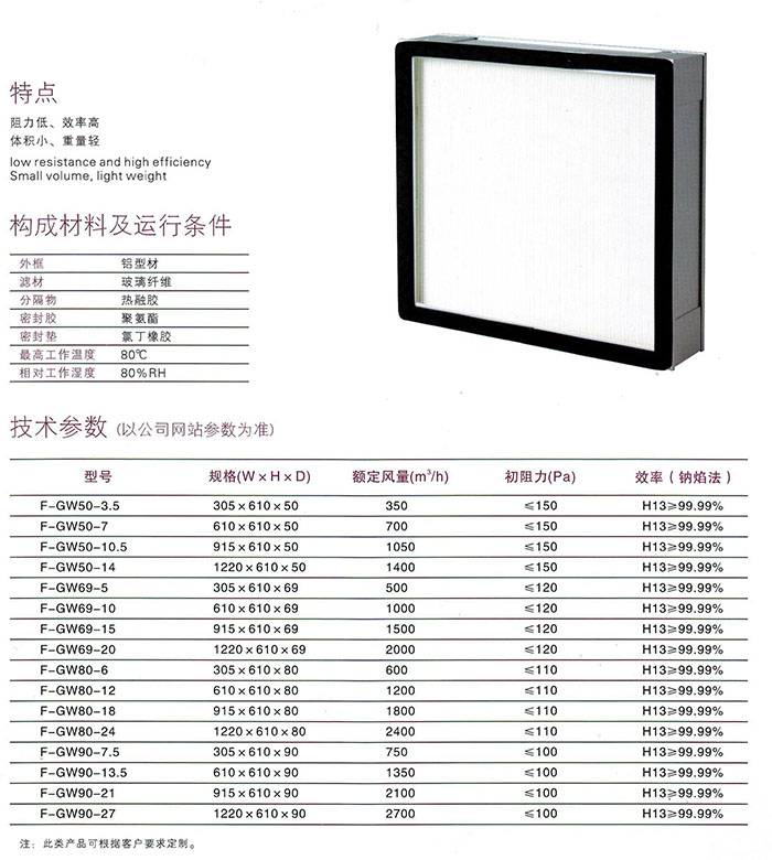 F-GWUL无隔板超高效过滤器